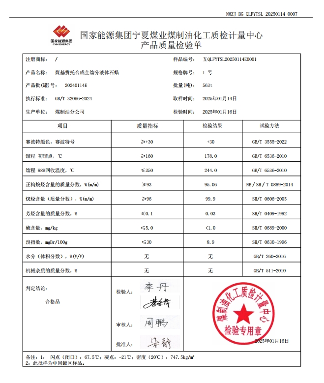 宁煤液蜡中间罐区 2025年1月16日指标