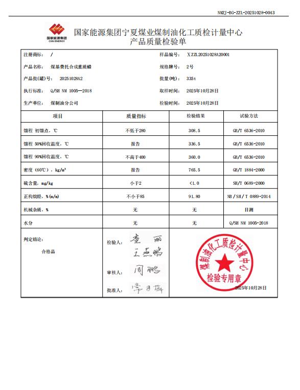 宁煤重质蜡2025年10月28日指标