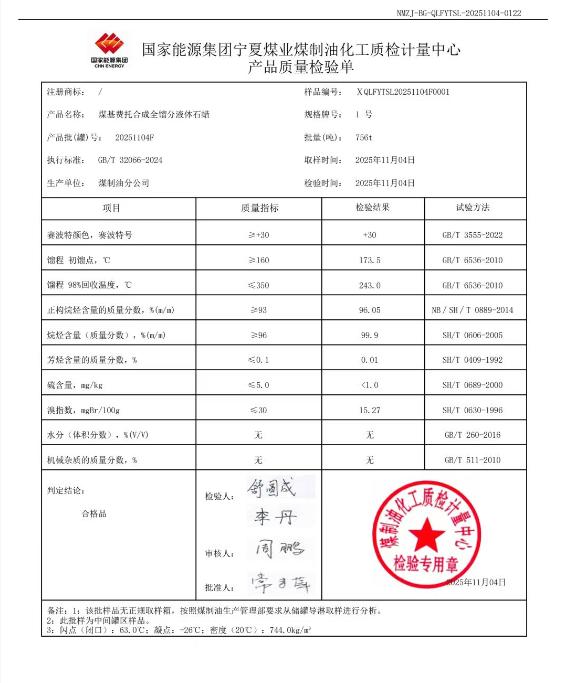 宁煤粗液体蜡1号 2025年11月4日指标