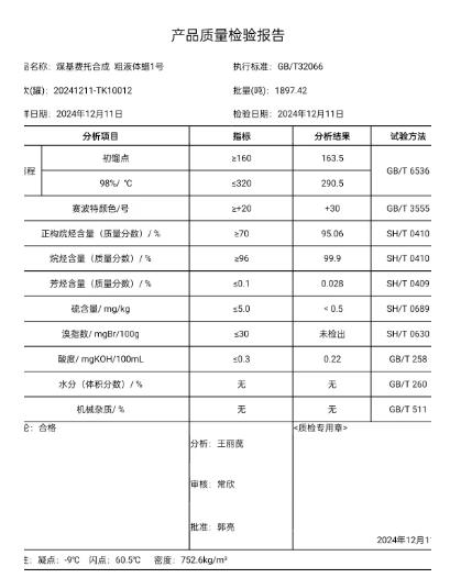 潞安粗液体蜡1号 2024年12月11日指标