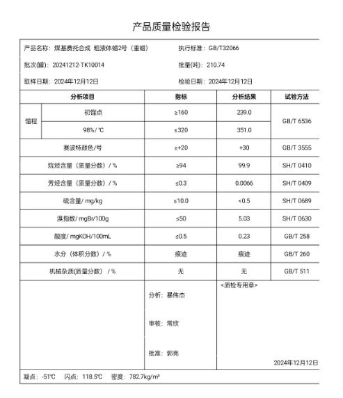 潞安粗液体蜡2号(重蜡) 2024年12月12日指标