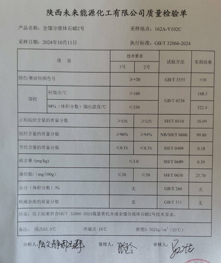未来能源粗2液蜡指标2024年10月11日