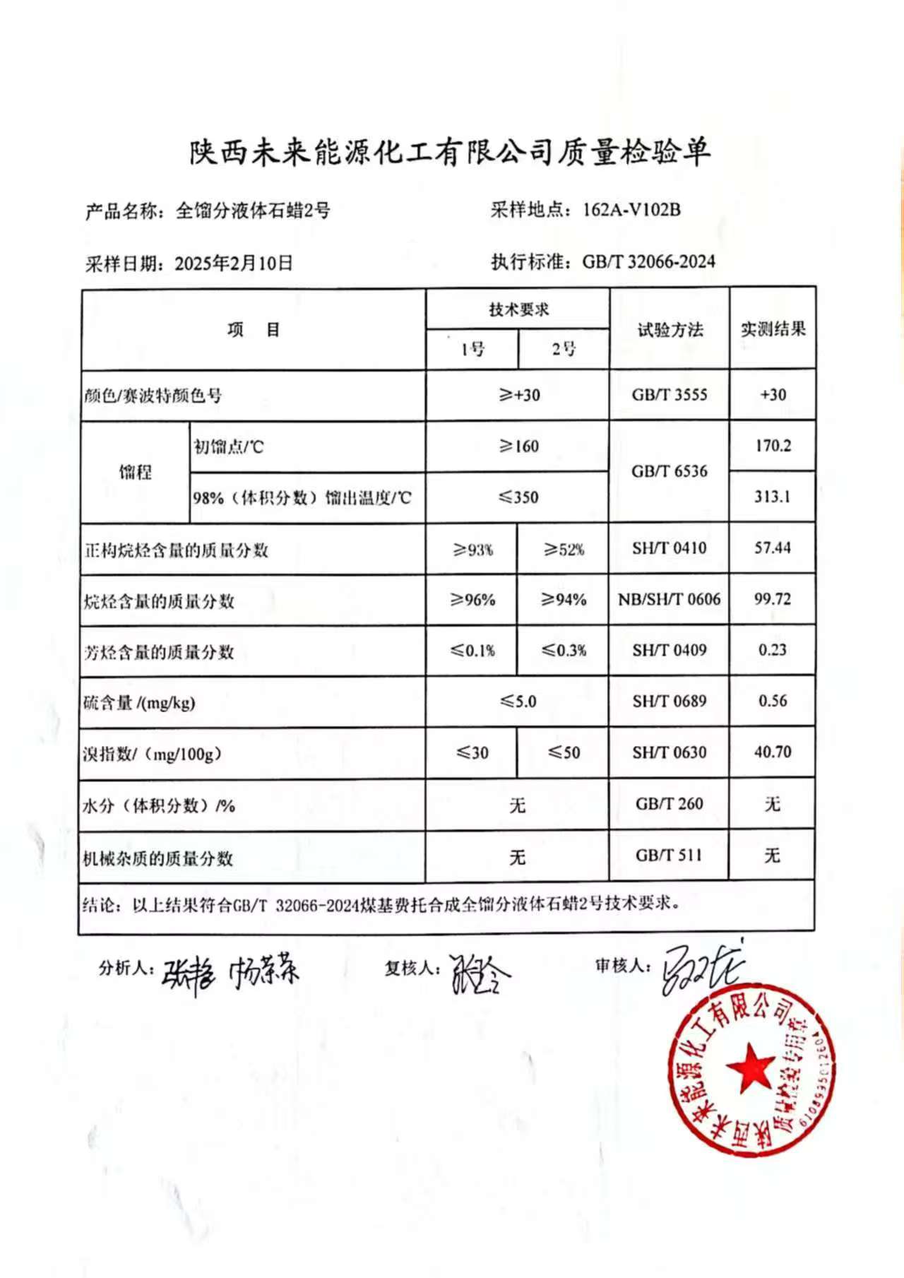 未来粗液体蜡2号 2025年2月10日指标