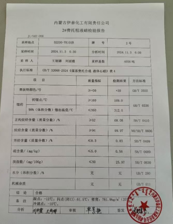 伊泰粗2液蜡2024年11月3日指标