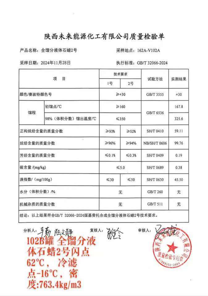 未来能源粗2液蜡指标2024年11月28日